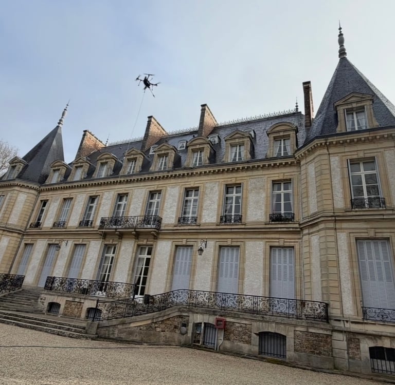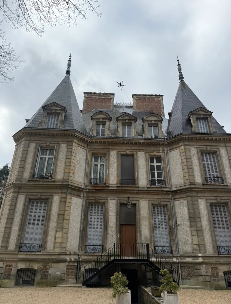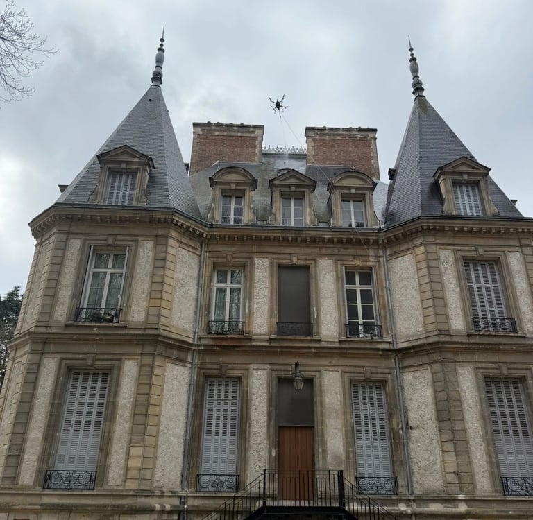 Selon l’accès et la hauteur du bâtiment, nous intervenons par drone pour les zones difficiles ou en hauteur, ou par perche télescopique lorsque cela est plus approprié.